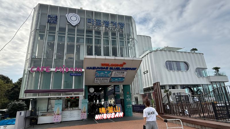 ▼ 這裡就是海雲台藍線公園尾浦站入口,是其中一個搭乘天空膠囊列車&海岸列車的地點。尾浦站與海雲台站有一點距離,步行的話需要15-20分鐘,所以我們直接由海雲台乘搭計程車前往。