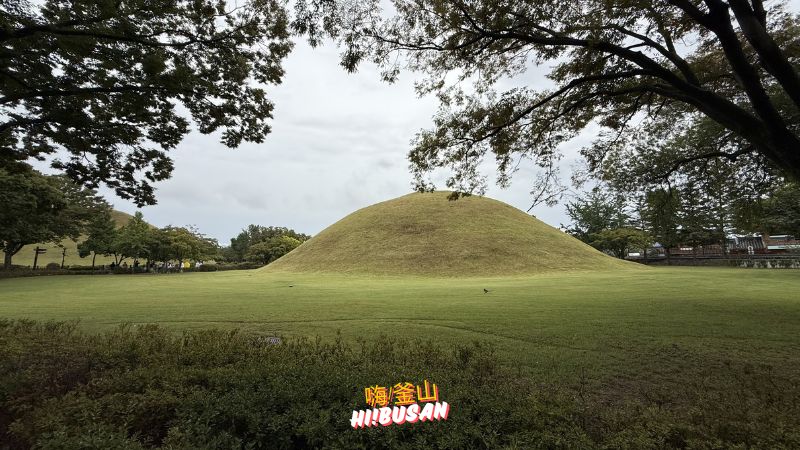 ▼ 其中最值得走進的是天馬塚,這是慶州唯一開放內部參觀的古墳,在裡面你可以親眼看到出土的金冠與陪葬品,感受穿越千年的震撼。