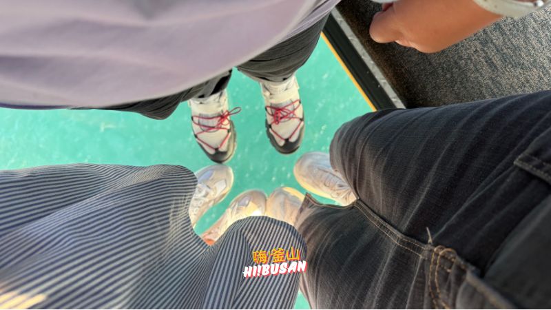 ▼ 透過水晶車廂的玻璃地板,從高空俯瞰釜山遼闊的大海,那種一望無際的感覺實在震撼!雖然乘車時間不長,但能用釜山通行證免費搭乘,真心覺得超值。就算沒有釜山通行證,只要天氣好,我也真心推薦來體驗一次。